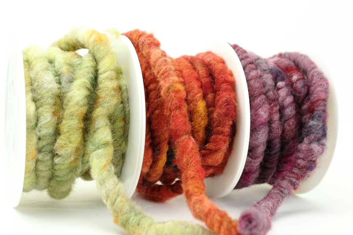 Für kreative Deko- und Bastelarbeiten haben wir 3 tolle neue Farben bei unserer Filzkordel ergänzt: grün multicolor, indian summer und waldbeere (vlnr). Alle Farben gibt es natürlich in den beiden Stärken: 7 und 15 mm.