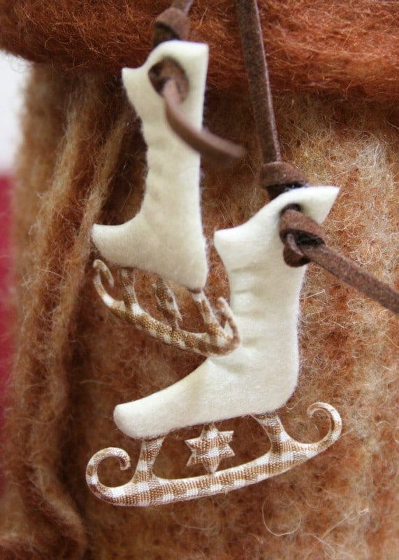 Ob Sterne, Knöpfe oder Schlittschuhe – alle Filzaccessoires sind in den aktuellen Farben der Weihnachtssaision erhältlich: creme/braun, grau/silber, rot-weiß-kariert und lila/flieder.