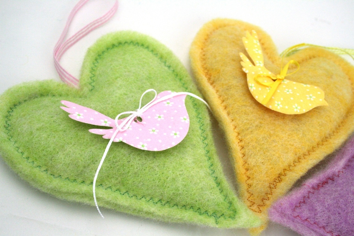 Mit Herzen aus Wollvlies schenken Sie Liebe. Und die Herzen sind schnell gemacht.